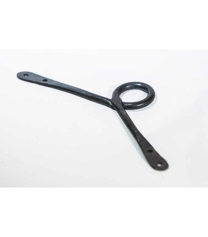 Gancio in ferro battuto grezzo anticato e lavorato a mano. Diametro occhiello 2,3 cm Distanza punte 18 cm