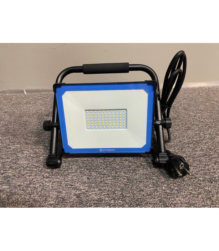 Faretto a luce LED 50 W. Leggero, pieghevole e dotato di pratica maniglia per il trasporto. Flusso luminoso: 5800 lm Durata di vita del LED: 30.000 h Classe energetica: E Classe di protezione: IP 65 Lunghezza cavo: 1,5 m Ingombro: 26x19 cm