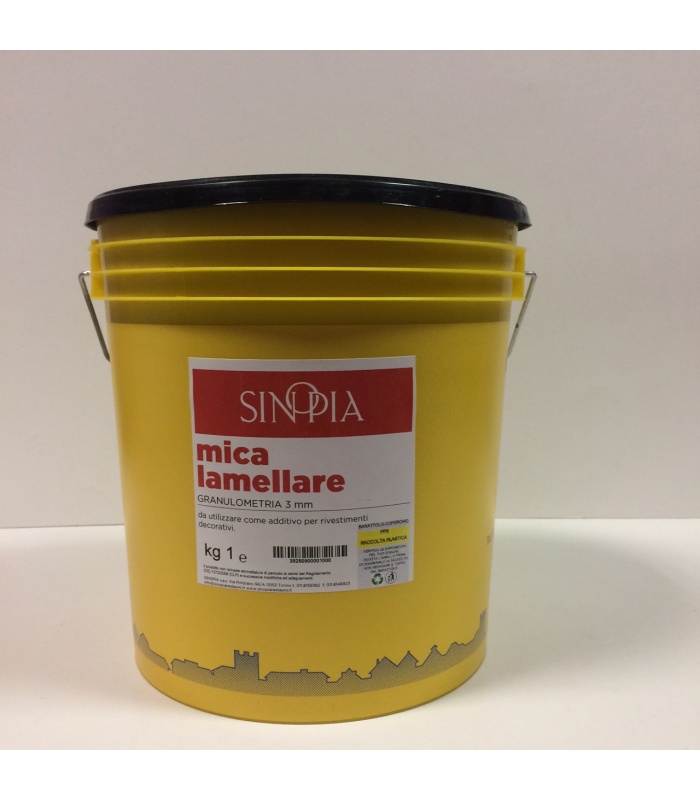 Lamelle di mica silicea minerale, riflettente, argentea. Indicata nella preparazione di effetti decorativi o per l'imitazione della pietra.