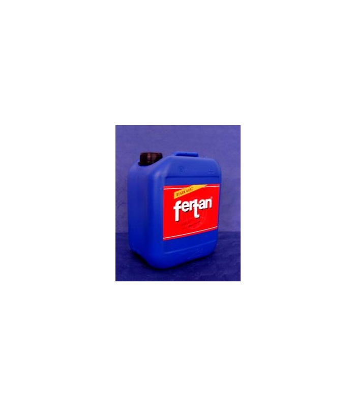 Prodotto antiruggine. A differenza di altri prodotti, il Fertan non copre la ruggine, non la scioglie chimicamente, non lascia superfici acide, non la converte in una pellicola secca, ma la trasforma in polvere inerte e la stacca. Lascia uno strato di metallo brunito. Fertan ha una duplice azione: continua a sgretolare la ruggine finchè non si combina col metallo sottostante, sulla superficie forma uno strato compatto di composto ferro-tanninici, insolubile, che costituisce ancoraggio per la successiva verniciatura. Può essere applicato sul ferro poco arrugginito, sulla ruggine tenace ed anche sul metallo nudo per proteggerlo dalla ruggine futura. E' a base acquosa, quindi penetra ovunque, nelle giunture ed anche sotto la vernice fessurata. Può essere applicato su superfici umide o bagnate. E' innocuo per le plastiche, la gomma, le cromature e le superfici già verniciate. Fertan è attivo solo quando incontra il ferro o la ruggine: dalle altre superfici può essere lavato semplicemente con acqua. Non è infiammabile. L’azione protettiva del Fertan prosegue per molti anni purchè la superficie trattata venga ricoperta con uno strato di vernice o con altro prodotto similare.
